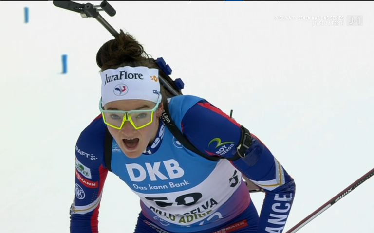 Sortie quatrième du dernier pas de tir, Lou Jeanmonnot compte seulement une poignée de secondes de retard sur le podium. Alors qu’on craint un éventuel retour de la Française, c’est finalement la médaille en chocolat qui s’enroule autour de son cou. Juste devant sa compatriote, Océane Michelon, pour un retentissant presque doublé. La FFL mange Gucci aujourd’hui en biathlon.