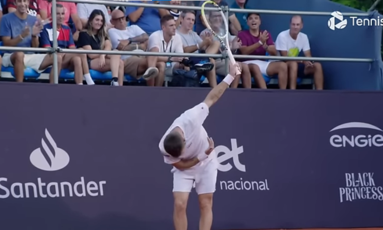 Mais ce qui retient notre attention ici, c’est un service réalisé par Moutet dans la première manche. Ou plutôt deux services. Alors que le premier est out, on se dit que le Français va assurer sur sa deuxième balle. Comme le ferait 99,99% des joueurs sur le circuit. Mais c’était bien mal connaître notre Coco national qui envoie un service à la cuillère à la surprise générale. Parvenant même à se surprendre lui-même, étant donné que la balle vient mourir dans le filet.