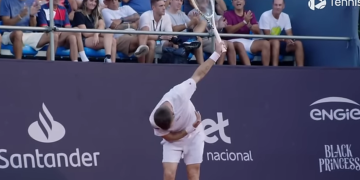 Mais ce qui retient notre attention ici, c’est un service réalisé par Moutet dans la première manche. Ou plutôt deux services. Alors que le premier est out, on se dit que le Français va assurer sur sa deuxième balle. Comme le ferait 99,99% des joueurs sur le circuit. Mais c’était bien mal connaître notre Coco national qui envoie un service à la cuillère à la surprise générale. Parvenant même à se surprendre lui-même, étant donné que la balle vient mourir dans le filet.