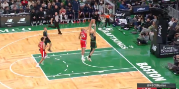 C’est simple, l’ancienne joueuse de l’ASVEL ne va laisser strictement aucune chance à ses adversaires de San Francisco. La Française ne va pas inscrire un, ni même deux, mais bien trois tirs à trois points d’affilée dans la seule fin du troisième quart-temps. Et ce, en l’espace d’une minute et 40 secondes, sinon ce ne serait pas drôle. Et avec notamment un panier envoyé sur une jambe. Jusqu’à quand allons-nous tolérer cela ?