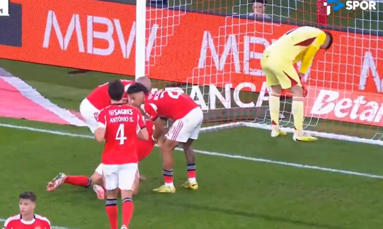 Dans le cadre de la 11e journée du championnat du Portugal, le Benfica Lisbonne recevait Casa Pia dans son célèbre Estádio da Luz, qui ne va pas tarder à se traduire en stade de la Lose. Tandis que les Lisboètes mènent 2-0 à l’heure de jeu, ils subissent un pénalty. Mais bonne nouvelle pour eux, leur gardien Anatoliy Trubin le détourne, faisant se lever de joie ses supporters. Oui mais voilà, alors que le gardien ukrainien n’a même pas encore eu le temps de se relever pour communier avec son public, son coéquipier Tomas Araujo souhaite dégager le danger de la surface de réparation. Son dégagement est si précis qu’il nettoie la toile d’araignée dans la lucarne de ses propres cages. Splendide.
