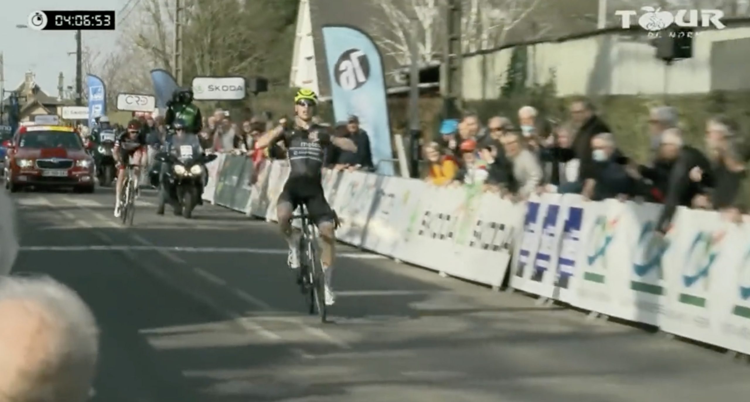 Pourquoi pantois ? Parce qu’il l’observe célébrer alors qu’il reste un tour à faire. Le Hollandais comprend vite qu’il vient de se taper la honte et en plus de griller des calories dans le vent. 15 kilomètres plus tard, c’est son compatriote Casper van Uden qui va lever les bras au sprint. Pour une bonne raison cette fois.