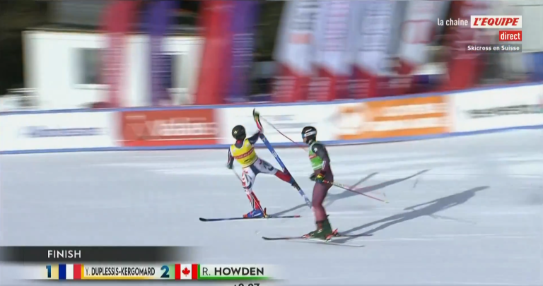 INCROYABLE ! Le Français Youri Duplessis-Kergomard remporte la finale de la Coupe du monde de skicross à Veysonnaz ! Il frappe un grand coup à quelques jours des JO d’hiver #lequipeSKI pic.twitter.com/qExM0gz2BX