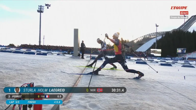 Mais sur le sprint, le Français ne parvient pas à déborder son adversaire scandinave et échoue d’un rien face à Laegreid. Pour moins de 30 centimètres, Perrot voit la victoire lui passer sous le nez, pour notre plus grand bonheur.