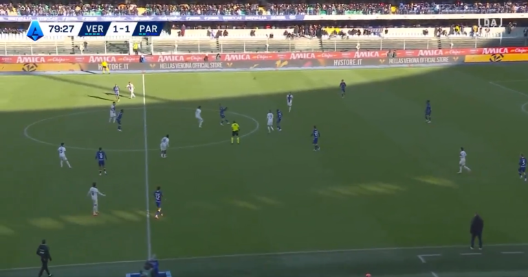En effet, avec ce coup de boule, le joueur brésilien lance idéalement en profondeur Mateo Pellegrino vers le but. L’attaquant argentin n’en demandait pas tant, et lobe le gardien de Vérone. Parme reprend l’avantage, et ne le perdra plus. L’Hellas perd donc à domicile sur une boulette, que demander de mieux ?