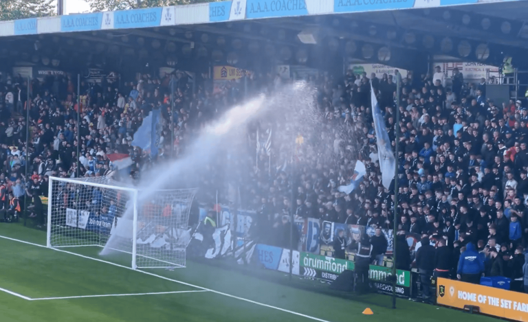 Dans le cadre de la sixième journée du championnat écossais, le Livingston Football Club recevait les Glasgow Rangers. Et si le match a offert des buts, le véritable spectacle a eu lieu en tribunes. En effet, alors que les supporters des Gers s’époumonent dans les gradins, le célèbre Almondvale Stadium va leur réserver une surprise de taille. Ou plus précisément son jardinier. En effet, alors que l’arrosage est actionné sur la pelouse, l’un d’entre eux est dirigé vers la tribune des supporters de Glasgow. On voit donc ces derniers continuer de chanter alors même qu’ils prennent un déluge en pleine tête. L’humour écossais sans nul doute.