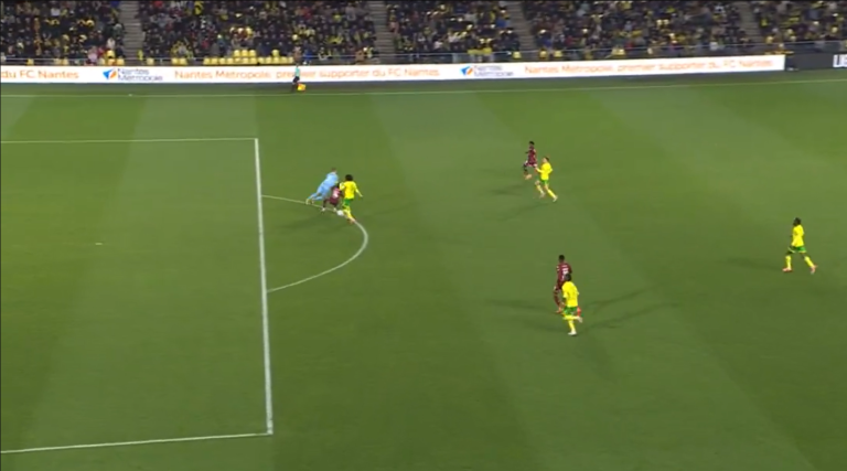 Parvenu à fausser compagnie de son adversaire, Cheikh Sabaly se présente seul face à Anthony Lopes. Fidèle à sa réputation, le gardien nantais fait rapidement regretter à Sabaly de s’être présenté en duel face à lui. En effet, il le tamponne avec une précision chirurgicale, et le ballon est à nouveau dans les pieds des Nantais. Mais traversé par un fair-play de grande classe, Tylel Tati décide de jouer sur un Messin. Et plus précisément Giorgi Abuachvili, qui n’a plus qu’à trouver le chemin des filets. C’est ma Ligue 1 ça.
