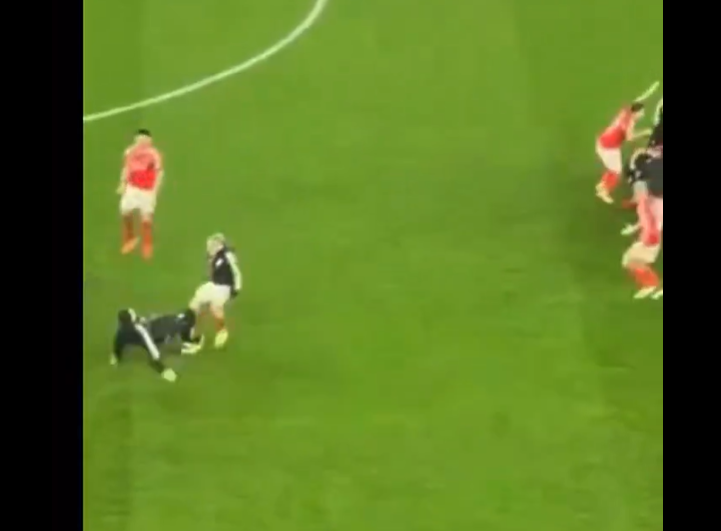 Comme tout mortel devant cette action, nous sommes obnubilés par le but d’Anatoliy Trubin au bout du bout du temps additionnel. Mais nos yeux oublient de regarder la célébration de Gianluca Prestianni. En effet, le joueur argentin du Benfica court dans tous les sens, et voit un membre du staff devant lui. Les deux se rejoignent pour communier avec le stade en délire, mais l membre du staff oublie un détail important ; elle n’est pas chaussée de crampons. Au bout de quelques foulées seulement, celui-ci glisse sur la pelouse et envoie les deux pieds décollés sur la rotule de Gianluca Prestianni. À l’instar de cette fin de match, on n’a pas les mots.
