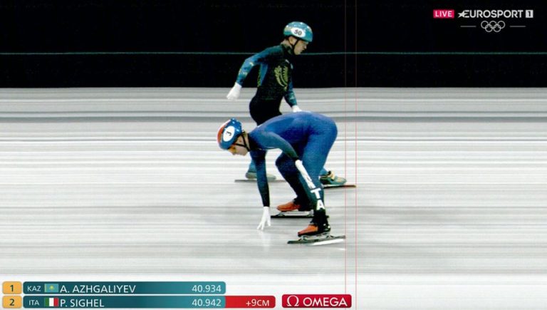 Dans le cadre des séries du 500m en short-track, un homme s’est démarqué de ses concurrents : Pietro Sighel. À domicile devant son public, le patineur italien compte bien se qualifier pour la manche suivante. Pourtant, c’est Furkan Akar qui se trouve en tête de la course à un virage de l’arrivée. Tandis que l’Italien tente de lui faire l’extérieur, Reinis Berzins tente lui de faire l’intérieur au Turc. Le Letton imagine tellement bien son coup qu’il le découpe finalement dans les règles de l’art. Pris dans le contact, Sighel fait un tour sur lui-même pour garder l’équilibre, et franchit la ligne d’arrivée en backside. Une figure qui aurait reçu une jolie note en slopestyle.