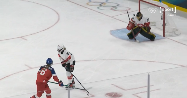 Opposée à la République tchèque, l’équipe de Suisse féminine de hockey sur glace disputait sa rencontre quelques heures avant la cérémonie d’ouverture. Cette fois, il n’y a pas de chute à relever lors de cette confrontation, mais plutôt un arrêt réflexe de la part de Saskia Maurer. En effet, le dernier rempart suisse doit s’interposer sur un tir tchèque tenté à quelques mètres de ses cages. Alors que le palet semble se diriger vers la lucarne, Saskia Maurer stoppe la tentative en effectuant un coup de casque. Peu académique, certes, mais terriblement efficace.