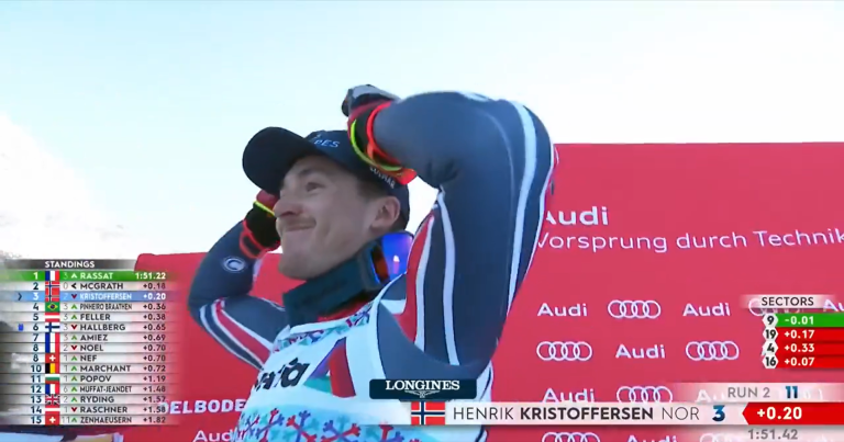 Même Clément Noël, récent vainqueur de l’épreuve de Madonna, ne peut terminer que huitième. Avec ce succès, Paco Rassat s’empare de la tête du classement général en slalom. Comme l’impression que le ski tricolore s’enflamme au pire des moments.