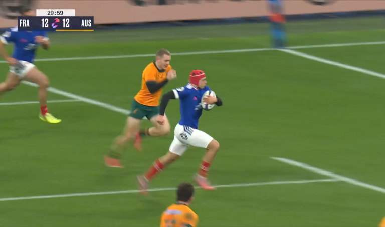 Le XV de France affrontait l’Australie dans le cadre de la tournée d’automne. Et si les joueurs de Fabien Galthié ont idéalement lancé leur match, avec un essai encaissé au bout de deux minutes seulement, un homme a gâché tous les efforts tricolores ; Bielle-Biarrey. En effet, à la demi-heure de jeu, l’ailier de l’UBB est servi par son coéquipier en club, Damian Penaud, et réalise une percée intolérable. Après avoir débordé son vis-à-vis, il joue au pied pour lui-même afin de lober son adversaire. Il termine en crochetant un troisième Australien. C’en est trop pour nous.