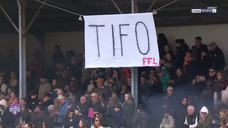 Face à ce couac de dernière minute, il faut réagir, et c’est même à cela qu’on reconnaît les vrais champions. Les supporters en question peuvent être rassurés ; ils en font partie. En effet, le tifo originel, qui devait recouvrir toute la tribune, a finalement été remplacé par un tifoïto. Un petit drap sur lequel est écrit TIFO FFL. Rendre hommage à la Fédé de la Lose quand vous venez de loser en direct, c’est une autodérision qui va directement dans nos veines. Nos champions du jour.