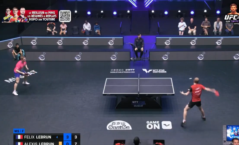 La finale du WTT Star Contender entre Alexis et Félix Lebrun a tenu toutes ses promesses. Des rebondissements, une presqu’remontada et des points venus tout droit du futur. Comme celui joué dans la quatrième manche, alors qu’Alexis est mené trois sets à zéro. Félix est au service, et doit impérativement remonter un retard conséquent (7-3). Très vite, le frère cadet prend l’ascendant dans l’échange, et Alexis est contraint de reculer de deux bons mètres derrière la table. Puis trois, et quatre. Félix bourrine sur chaque smash, mais son grand frère remet tout sur la table.