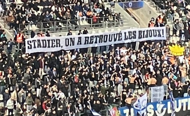 En match d’ouverture de la 12e journée de Ligue 1, le Paris FC recevait le Stade rennais dans son antre de Jean-Bouin. Et avant même le coup d’envoi, les supporters locaux ont été frappés d’une inspiration légendaire. Mais ce qu’ils ignoraient, c’est ce que ce serait la seule de leur équipe ce soir-là. En effet, tandis que les supporters parisiens ont fait parler d’eux ces derniers jours, étant donné que quatre interpelés sur les cinq dans le cadre de l’affaire du vol au Musée du Louvre ont été arrêtés devant ce même stade Jean-Bouin, à l’occasion de la réception de l’Olympique lyonnais, les fans du Paris FC ont tenu à éclairer les autorités dans leur enquête. En effet, ces derniers ont déployé une banderole en tribunes sur laquelle est inscrit : « Stadier, on a retrouvé les bijoux !« . La France qu’on aime.