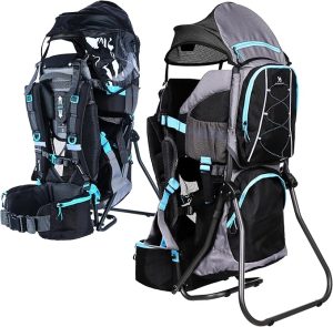 Ce porte-bébé de randonnée offre un bon équilibre entre praticité, confort et prix. Avec son cadre en aluminium robuste, son siège rembourré et ses sangles de sécurité, il garantit à bébé une position stable, même quand le chemin se transforme en sentier de chèvres. Les ouvertures latérales facilitent l’installation (fini les contorsions dignes d’un spectacle de cirque), et les étriers réglables permettent à votre petit passager de rester à l’aise plus longtemps. Ajoutez à ça une housse anti-UV et pluie, un petit oreiller, un tapis à langer, et vous voilà paré pour partir sans rien oublier… ou presque.