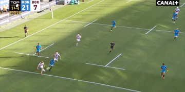 Il n’en fallait pas plus pour réveiller l’ogre sud-africain. Après cet accident industriel, la France reprend ses bonnes vieilles habitudes, et se voit dépassée dans tous les secteurs. En tête ? Un François Trinh-Duc des plus conquérant. Le demi d’ouverture tente de relancer depuis sa moitié de terrain, puis se fait intercepter le ballon dès sa première passe. Essai.