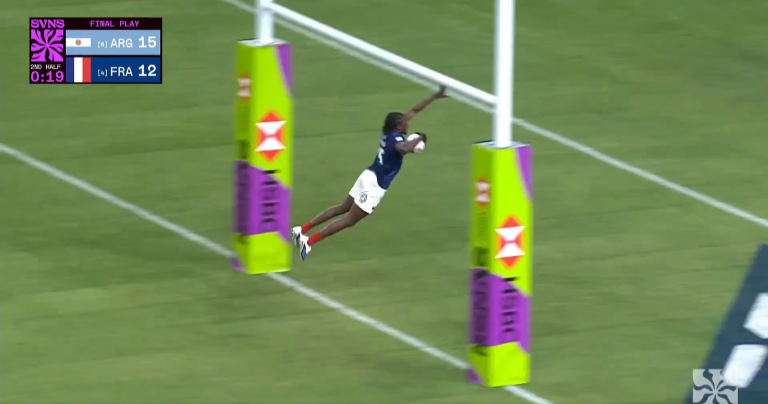Après avoir battu respectivement la Nouvelle-Zélande (19-12) et l’Australie (31-7), l’équipe de France débutait sa manche des Sevens Series de Singapour avec une réussite insolente. Alors pour le dernier match de poules, les Bleus affrontaient l’Argentine avec une possible place en demi-finales. Les Sud-Américains mènent 15-12 quand la sirène retentit, on se dit alors que le sans-faute des Bleus est de l’histoire ancienne. Mais sur un ultime assaut, Ali Dabo perfore la défense argentine et s’en va à l’essai une vingtaine de secondes après la sirène. Il se permet même de réaliser le saut de l’ange entre les perches. L’humiliation est totale.