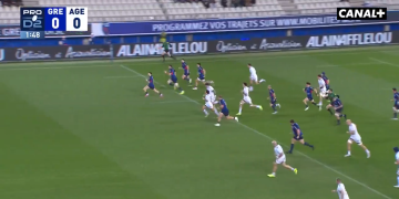 Comme chaque week-end, nous nous retrouvons avec un match de Top 14. Et pour cette 43e semaine de l’année, l’Union Bordeaux Bègles recevait l’Aviron bayonnais pour un duel de prétendants au titre. Mais il n’a fallu attendre que quatre minutes pour voir vous savez qui faire saigner nos yeux. Aligné à l’arrière pour l’occasion, Louis Bielle-Biarrey joue sur l’aile avec Damian Penaud, qui lui effectue un jeu au pied derrière la défense basque suite à la directive de LBB. Et c’est justement ce dernier qui se retrouve à la réception pour aller filer à l’essai. Bien aidé, il faut dire, par la main savonneuse du défenseur de l’Aviron.