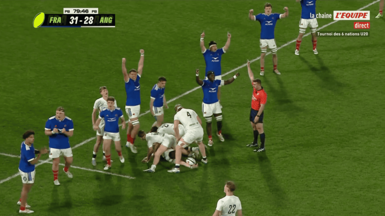 Les Bleuets mènent 26-7 avant de se retrouver menés 26-28 à la 53e minute, ayant subi un sublime 21-0. Mais après un nouvel essai (31-28) et une fin de match irrespirable, comme la veille, les Français remportent le baby-Crunch et s’adjugent un premier Grand Chelem depuis 2014. La double lame pour l’Ovalie tricolore.