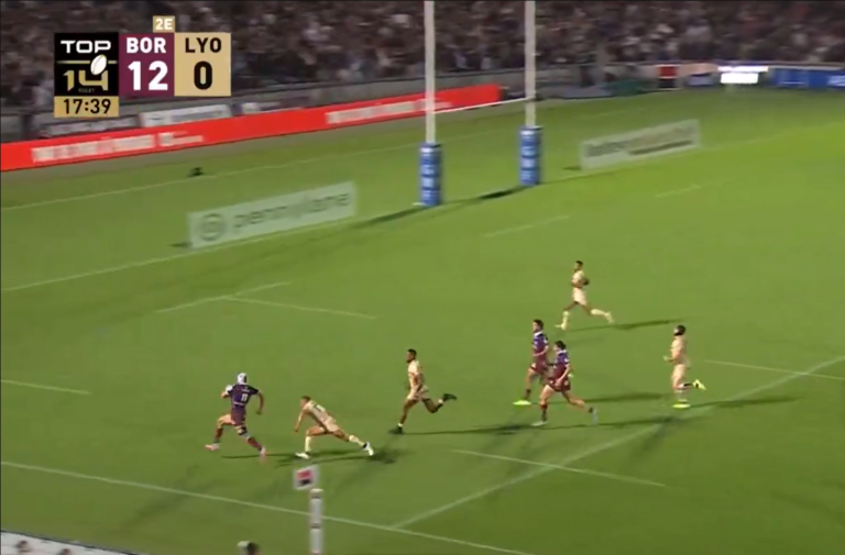 En marge de la cinquième journée de Top 14, l’Union Bordeaux Bègles recevait Lyon au stade Chaban-Delmas. Et les joueurs de Yannick Bru n’ont pas mis longtemps pour faire sauter le verrou lyonnais. En effet, en seulement 17 minutes, les Bordelais ont aplati le ballon dans l’en-but à trois reprises. Et la troisième réalisation de l’UBB fait mal aux yeux. Depuis leur propre moitié de terrain, les Bordelais transpercent la défense lyonnaise. Nicolas Depoortere est à la manœuvre, et sert Bielle-Biarrey à toute vitesse. L’ailier du XV de France ne laisse strictement aucune chance à Lyon, et s’en va inscrire son premier essai de la partie. Le rugby semble si simple quand on le regarde jouer.