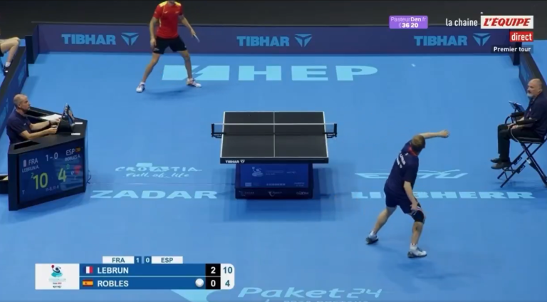 Dans le cadre des Championnats d’Europe par équipes de tennis de table, l’équipe de France débutait sa compétition en affrontant l’Espagne. Et c’est Félix Lebrun qui lançait les hostilités face à Daniel Berzosa. Si vous pensez que le nouveau numéro 5 mondial va balayer le 165e joueur mondial, c’est bien mal connaître le Montpelliérain. En effet, contre toute attente et alors que pas moins de 160 places les séparent au classement WTT, Félix Lebrun perd le premier set. ALORS PEUT-ÊTRE ?