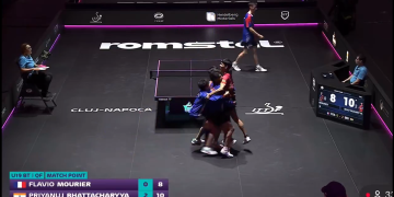 La bérézina. Nous n’avons pas encore eu le temps de digérer notre « jeudi noir » à nous dans ces Championnats d’Europe, que la fratrie des Lebrun nous fait replonger dans le désarroi le plus total. Cette fois, pas question de jouer chacun de son côté, les Lebrun décident d’unir leurs forces dans le tournoi du double masculin. Et pour ces huitièmes de finale, ils sont opposés à deux joueurs n’étant ni frères, ni compatriotes. Une division par zéro dans le logiciel des Français. En effet, l’Espagnol Alvaro Robles et le Roumain Ovidiu Ionescu s’apprêtent à vivre un réveil qui pique dans cette matinée autrichienne. De manière sérieuse, Félix et Alexis verrouillent le premier set (11-9), puis le second (11-6).