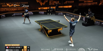 Non, Flavien Coton n’est pas le seul Français à martyriser la FFL au Grand Smash de Chine. En effet, Félix Lebrun n’est pas le plus mauvais à ce jeu. Pour cela, il suffit de jeter un œil sur son premier tour face à Aditya Sareen, pourtant 49e joueur mondial, remporté en seulement 15 minutes. Nous aurions dû nous douter que cette leçon de tennis de table n’augurait strictement rien de bon pour la suite. En seizièmes de finale, le Français était opposé à Chen Yuanyu, n°22 au classement mondial. Un adversaire coriace à ce stade de la compétition vous nous direz, mais on ne va pas se plaindre. Si le Montpelliérain remporte sèchement la première manche (11-3), le Chinois lui répond de la même manière lors des deux suivantes (4-11, 5-11). Ajoutez à cela une pincée de guigne pour Félix sur son service, et vous obtenez une fin de match ultra stressante pour lui, à un petit set de rejoindre son frère dans le tableau du simple masculin. À savoir devant son téléviseur.