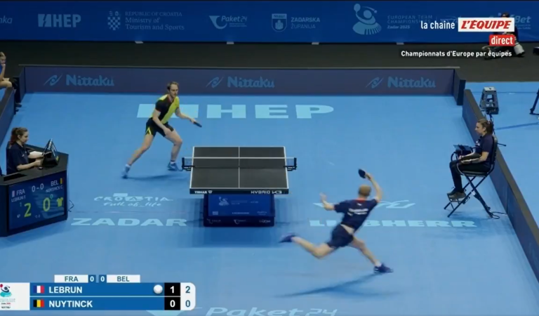 Les Championnats d’Europe par équipes de tennis de table livraient leurs quarts de finale en ce vendredi, et la France était opposée à la Belgique. Face à nos voisins, on ne peut pas vraiment dire qu’il y a eu de « duel ». Et croyez-nous, on aurait préféré vous affirmer le contraire. Trois matchs ont été joués, pour trois victoires tricolores, à chaque fois sur le score de trois sets à zéro. Pour un cumul total de neuf manches à rien, et 99 points à 52. On confirme, il n’y a pas eu de match durant une heure. Mais au-delà du score, c’est l’inspiration de Félix Lebrun qui ne passe clairement pas lors du premier match.