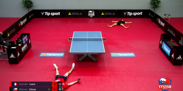 Open d’Autriche. 14 novembre 2019. Huitièmes de finale. Le double français, Emmanuel Lebesson et Tristan Flore, 2 des meilleurs pongistes tricolores, affronte les chinois Jingkun Liang et Goayuan Lin . Le match commence mal pour les français qui mènent 2 sets à 1. Pire encore, ils mènent 9-7 dans le 4ème set et sont à 2 points du match. Échec, 11-9 pour les chinois, qui reviennent à 2-2 et forcent donc le set décisif.
