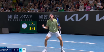 Le match déroule à une vitesse folle ; 24 minutes pour le premier set, 28 pour le second, et le troisième suit les mêmes standards. Bublik est mené 4-0, quand il parvient à remporté son jeu de service, et éviter de faire Fanny. Le Kazakh lève les bras au ciel, et la foule se lève pour le féliciter. Un moment suspendu dans le temps.