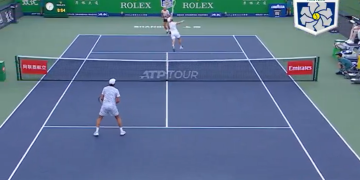 Aligné sur le Masters 1000 de Shanghai et avant-dernier Français encore en lice, Arthur Rinderknech défiait Alexander Zverev, numéro 3 mondial. Et face à l’Allemand, le joueur tricolore semblait avoir pris la pleine mesure de l’événement. En effet, Arthur Rinderknech perd le premier set (6-4), et déroule le tapis rouge à notre fédération. Oui mais voilà, alors qu’il doit récidiver dans la seconde manche, le Français ne trouve pas de meilleure idée que de sortir un point insensé. Débordé de chaque côté, Arthur Rinderknech trouve le moyen d’envoyer un passing croisé. Même le public chinois n’en croit pas ses yeux.