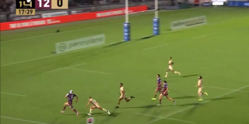 Derby de l’Aquitaine. Quel meilleur contexte pour faire admirer sa défense aussi perméable que le toit du court Philippe-Chatrier ? Dès la 8e minute de jeu les Bordelais inscrivent leur premier essai. Toutefois les Lot-et-Garonnais sont fiers. Et ne veulent pas se laisser abattre. Ils tentent alors de repartir depuis leurs 22 mètres. Comme à la bonne vieille époque. Décalage sur la droite. Dégagement au pied de Buttin pour amorcer une contre-attaque. On recommence à se remémorer les folles percées de Philippe Sella. Sauf que le jeu au pied de l’arrière est contré. Essai UBB. 26 minutes de jeu, 23-0. Presque un point encaissé par minute. On se dit alors que la soirée va être très longue du côté d’Agen. Mais on se trompe sur toute la ligne.