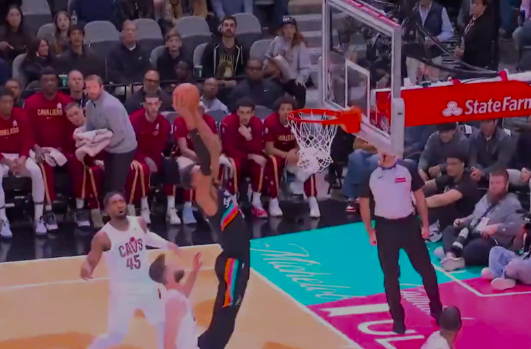 On vous prévient tout de suite, la réception des Cleveland Cavaliers n’a pas été une partie de plaisir pour les fans des San Antonio Spurs. En effet, les Texans ont subi un second revers d’affilée (113-101) et marquent enfin le pas. Mais même dans la défaite, Victor Wembanyama continue à faire des siennes. Tandis que nous ne jouons que depuis trois minutes dans cette partie, Stephon Castle intercepte un ballon et envoie celui-ci sur la planche pour qu’il se transforme en véritable caviar pour Wemby. Le Français n’a plus qu’à fracasser le panier en dunkant. Une action digne du All-Star Game, mais en saison régulière.