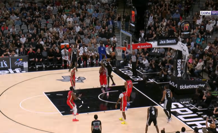 Quelques jours après son dunk sur la tête de Kevin Durant, on espérait que cette mauvaise manie de Victor Wembanyama lui passerait. Mais visiblement, le pivot français est retombé dans ses travers dès le match suivant. En effet, tandis que les San Antonio Spurs étaient opposés aux New Orleans Pelicans dans la nuit de samedi à dimanche, les coéquipiers de Wemby pouvaient remonter à la deuxième place à l’Ouest en cas de succès. Et ces derniers ne s’en sont pas faits prier. Une victoire 126-119 à domicile, et surtout une nouvelle action où Wembanyama a littéralement pris feu. Après une feinte de tir, le Français sprinte vers le cercle et décide de le démolir par un dunk dont il a le secret. Du Wemby dans le texte.